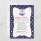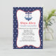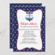 ¡Navegando por los mares! Los bebés gemelos están en camino. Esta invitación a la ducha náutica para bebés tiene un fondo azul oscuro con pequeños puntos de polka blancos a ambos lados. Hay un ancla azul con remolinos y dos lindas ballenas azules en el ancla en el centro de arriba. El centro es una etiqueta blanca que se esboza en rojo, donde se personaliza con la información de su fiesta. Mira nuestros muchos otros diseños y productos que tenemos en nuestra tienda.