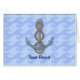 Ancla con el ilustracion de la cuerda sobre fondo inconsútil azul claro de las ondas. Texto de encargo.