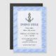 Ancla con ilustracion de cuerda sobre las olas fondo transparente azul claro sin costura. Texto personalizado.