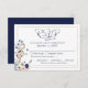 Tarjeta de respuesta de boda con tema náutico, costero o de playa con un ancla con flores de acuarela en colores azul marino, melocotón, azul claro y blanco enmarcado con un borde de oro champán y tipografía de letra de caligrafía elegante. El diseño incluye su texto personalizado para incluir selecciones de menú u otros detalles o información. ASISTENCIA: Para obtener ayuda con la modificación del diseño o personalización, cambio de color, transferencia del diseño a otro producto o si desea elementos coordinados, comuníquese con el diseñador ANTES DE REALIZAR EL PEDIDO a través de la pestaña de MENSAJE de chat de Zazzle o envíe un correo electrónico a makeitaboutyoustore@gmail.com.