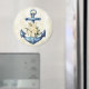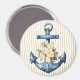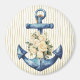 Este ancla de color azul acuático tiene hermosos rosas de color crema y descansa sobre un fondo de líneas doradas onduladas. Este imán encaja con nuestro Elegante conjunto de envolvimientos de anclas y papel de tejido si usted busca un aspecto coordinado y desea incluirlo en un regalo.
