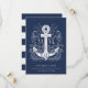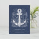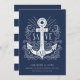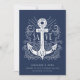 Anuncie a su boda a la familia y amigos con esta moda costera, salven las tarjetas de fecha en azul marino clásico y blanco roto y gris. El diseño presenta un ilustracion de ancla de un barco dibujado a mano con la inscripción "guardar amablemente la fecha". Personalice estas naúticas guardar las tarjetas de fecha con sus nombres, fecha de boda, ubicación y sitio web del boda, o una indicación de que le seguirá una invitación formal. Las tarjetas se invierten a bandas anchas horizontales de la marina.
