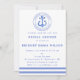 NewParkLane - Invitación a la ducha Náutica personalizada, con un ancla de color azul en un marco circular, que contiene sus nombres y fecha de boda. En la parte trasera y en la parte inferior de la invitación, un patrón de rayas azul marino. Un diseño divertido y moderno para una celebración de bodas con temática náutica. Todos los estilos de texto, colores, tamaños se pueden modificar para adaptarlos a sus necesidades. Consulte esta colección para ver los elementos coincidentes, como guardar las tarjetas de fecha, las invitaciones y más. ¿Necesita ayuda o tiene deseos específicos de diseño personal? ¡Siéntete libre de contactarme!