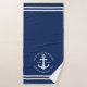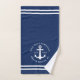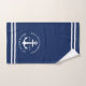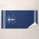 Crea un único juego de toallas de baño náutico monogramado que presenta un diseño azul marino claro y blanco con rayas onduladas y anclas. El texto de la plantilla permite personalizarlo con facilidad con el nombre de su familia, año y lugar. Se trata de una decoración de baño de diseño para una casa de playa y lago, un yate o un barco.