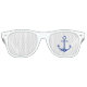 Gafas de sol blancas con un ancla náutica azul en un lado. Hace un favor divertido de fiesta para cualquier fiesta o evento. ¡Buques Ahoy! Mezcla y combina la colección náutica completa por TMCdesign.