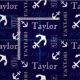 Diseño moderno de texto y anclaje náutico personalizado masculino textualmente tejido de nombre tipográfico. Un sencillo ancla gráfica azul y tu propio diseño de nombre corto. Personaliza con tu propio nombre (por favor ten en cuenta que no todos los nombres encajarán debido a la naturaleza del tipo de letra) actualmente lee Taylor, hay otras longitudes de nombres disponibles, si necesitas ayuda contacta conmigo, feliz de publicar uno para tu nombre. Una excelente manera de personalizar sus proyectos de costura y tejido. Ideal para los objetos de costura. Arte y diseño de Sarah Trett.