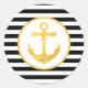 pegatinas personalizados con rayas negras y tema náutico del ancla dorada.
