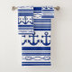 Este juego de toallas de baño tiene un divertido diseño náutico con anclas, cuerdas y rayas azules sobre un fondo blanco. Perfecto para un cuarto de baño de temática náutica, a alguien que le guste la vela, el océano o simplemente le guste un patrón náutico.