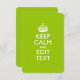 Su personalizado "Keep Calm" dice sobre una bonita decoración de color de acento verde androide y personalizado. Un estilo "Keep Calm" personalizado que dice sobre un regalo amable. Intenta con humor o capricho con tus palabras creativas en dos líneas editables de texto. Recuerde usar las letras CAPITAL para obtener los mejores resultados. Los diseños de bordado están disponibles en una amplia selección de opciones de color populares. Utilice el vínculo "Preguntar a este diseñador" para contactarnos con sus solicitudes de diseño especiales o para obtener ayuda con sus necesidades de personalización.