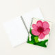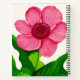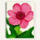 Diario en una gran imagen de cerca de una anémona, en tonos rosa coral, con un centro borgoñoso y hojas verde esmeralda