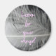 Ángel cita imán- Diseño de plumas con la cita, "Escucha por tu ángel" en rosa claro.