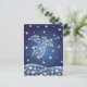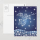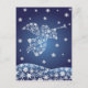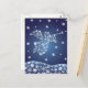 Ángel vistiendo trompeta en una velada de invierno con copas de nieve cayendo en un Ilustracion de fondo azul y dibujando postal