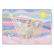 Un ángel de gato ******** en un cielo de cinta color pastel y nubes esponjosas rosas rosadas - un perfecto diseño conmemorativo/puente Arcoiris.