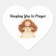 Dulce imagen de un ángel orando, aparece en esta calcomanía con forma de corazón. Con el mensaje, "Manteniéndote en Oración", hace que esta sea una dulce calcomanía para usar en ese correo especial, para decorar y hacer scrapbooking también. ¡Una excelente manera de hacer saber a sus seres queridos que están orando por ellos!