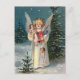 Imagen encantadora del vintage de un ángel que sostiene los regalos y los juguetes para el navidad.