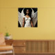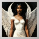 El poster estético de Angelcore presenta una obra de arte celeste que presenta a una hermosa mujer negra como un ángel celestial con grandes alas blancas, usando un vestido blanco. Una imagen única de la feminidad divina con una chica negra de piel oscura y bonito con una expresión sombría.