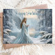 Esta elegante tarjeta de Navidad presenta a un ángel invernal sereno que se encuentra en un bosque nevado, simbolizando paz y gracia durante la temporada navideña. Con azules suaves y nieve brillante, este diseño irradia calma y tranquilidad, lo que lo convierte en una hermosa opción para enviar deseos sinceros de vacaciones. Ideal para cualquiera que aprecie la esencia espiritual de la Navidad.