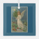 Bonito, ángel vintage que sostiene un pino, aparece en este adorno de vidrio cuadrado. Con el mensaje en la parte delantera, "Feliz Navidad", se verá encantador en tu árbol o te dará como regalo.