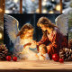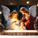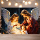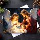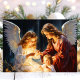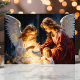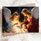 Celebre el verdadero significado de la Navidad con esta impresionante tarjeta que presenta a dos ángeles que cuidan amorosamente a un niño en una serena escena de la natividad. Este diseño atemporal y conmovedor es perfecto para compartir la fe y la alegría con los seres queridos durante la temporada navideña.