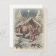 Tarjeta de vacaciones de Navidad con ángeles antiguos cuidando al Niño Jesús.