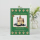 Esta es una tarjeta de Navidad con espacio para una foto. Incluye arte de ángeles y acebo. La tarjeta se muestra en un verde navideño brillante pero está disponible en una variedad de colores. El diseño permite escribir la dirección en el dorso o espacio suficiente para escribir una nota personal.