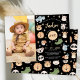 Cute Safari, Jungle, zoo animal se enfrenta a la invitación fotográfica de primer cumpleaños con elefante, jirafa, koala, león, cebra, cocodrilo, tigre, panda, pájaros, rinoceronte e hipopótamo.