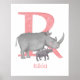 ¡R es de rinoceronte! O Rikki, Rachel, Rob... Agrega el nombre de tu hijo a esta linda impresión de LeopardyNonsense, con una adorable mamá y bebé rinoceronte. Perfecto para una guardería o habitación de niños. Contáctame si deseas ver este diseño en otro color.