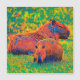 Retrato gráfico colorido de una mamá de capibara con su bebé