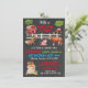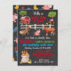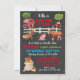 Animales de granja super adorables con divertida invitación de fiesta de cumpleaños. ¡Genial para un niño o chica! Cuenta con un porcino, una vaca, un caballo y un pollo de bebé con un fondo de pizarra.
