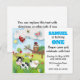 Escena de un jardín con animales de compañía para invitar a sus invitados a la celebración de su cumpleaños. Personalizar fácilmente el texto de delante y atrás.