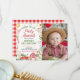 Nuestra Farm Barnyard Animals Birthday Photo Invitation combina el encanto rústico de un patio de labranza con un toque fotográfico personalizado. Con unas bonitas vacas, unos juguetones de cerdos o gallinas amigables junto a un granero rojo, esta invitación te permite mostrar la sonrisa de tu pequeño mientras que le da un toque de frescura perfecto a la granja para la celebración del cumpleaños. ¡Perfecto para crear recuerdos antes de que el fiesta comience!