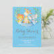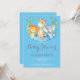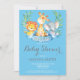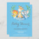 Invitación de Baby Shower de Safari Jungle Animals Boy. Tarjeta azul y gris. Muchacho Baby Shower Invite. Flor floral acuática y salir.