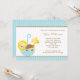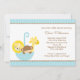 Una dulce invitación a la ducha de bebé con un lindo trío de animales de la selva enclavados en un paraguas azul de punto de la polka.