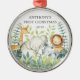 El primer ornamento navideño del bebé, los animales más dulces de la jungla enmarcados con hojas de selva acuarela.