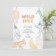 Haga que el fiesta de primer cumpleaños de su hijo sea inolvidable con esta encantadora invitación de cumpleaños animal de safari. Cada animal está adornado con un lindo gorra fiesta, lo que realza la vibración de la celebración. Este diseño de invitación captura a la perfección la alegría y la emoción de la fiesta de cumpleaños de un niño, lo que hace que sea ideal para marcar un tono divertido y alegre para su celebración.
