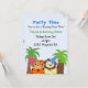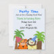El tigre y león más lindo con gorras fiestas coloridos acentúan esta divertida invitación de cumpleaños temática de la jungla. Palmeras soplando en el fondo. Personalizar con toda la información personal que desee. Una divertida invitación a los animales del zoo.