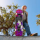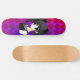 Skateboard azul Anime Chica. Hermoso chica de anime con un fondo de corazones rojos. Magnífico y atractivo tablero único.