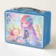 Almuerzo personalizado para una niña. Bonito morado, rosa y azul chica de anime y axolotl.