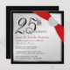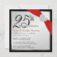 Invitaciones de fiesta de aniversario de 25 años elegantes de plata y negro con cinta roja simulada y corazón de estrás -- Personalice el nombre, la fecha y los detalles para esta feliz ocasión. **NOTA: Tamaño para tarjetas de invitación CUADRADAS. Tarjetas de agradecimiento y franqueo a juego disponibles. FRANQUEO EXTRA REQUERIDO EN INVITACIONES CUADRADAS.