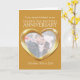 Tarjeta personalizada de aniversario de bodas de oro con su propia foto, año de matrimonio y palabras interiores. El ejemplo dice: Para mi querido esposo en nuestro aniversario de bodas de oro 50 años 25 de mayo de 1976 a 2026. Efecto de corazón de metal dorado arte y diseño de Sarah Trett para www.mylittleeden.com
