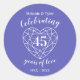 Sapphire celebra 45 años de pegatinas del aniversario del amor. Sencillo contorno de efecto de piedra cardíaca línea gráficos azul y blanco 45º Boda Sapphire pegatinas redondos. Personalizar con sus propios detalles del fiesta de su cuadragésimo quinto aniversario boda. El 45º aniversario se asocia tradicionalmente con el zafiro y el corazón simboliza el amor. Gráficos y diseño de Sarah Trett para www.mylittleedenweddings.com en zazzle.