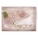tulipán rosa sobre la pila de tarjetas de felicitación con viñeta pastel para el aniversario boda
