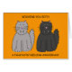 Dos gatitos personalizados con colmillos, uno negro y otro gris. La imagen tiene un fondo de color naranja y va acompañada de las palabras "Deseándote a ambos un fangástico aniversario de bodas".