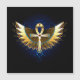 El tobillo egipcio dorado con alas estampadas y brillantes sobre un fondo negro. Símbolo mágico.