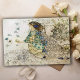 Suave y romántica, esta carta celebra la belleza de la figura y las golondrinas y el detalle de la ropa, el fondo y las flores. Este ilustracion vintage es de Annie French.