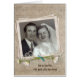 Old-fashioned snapshot with daisy bouquet on sepia musical background for any year wedding anniversary dinner.
