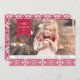 La tarjeta fotográfica festiva incluye tu foto horizontal o paisajista favorita en todo su color con alegres acentos rojos y blancos. En la parte superior izquierda aparece un cartel de cinta roja que lleva el nombre de la familia y el año, mientras que el mensaje de su personalizado se coloca en la parte inferior, encima de una franja con motivos nórdicos en rojo y blanco.