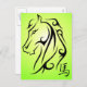 La cabeza de caballo negra de la tinta con el símbolo del carácter chino para el caballo, fondo (chartreuse) del verde de la pendiente. ¡Año feliz del caballo! 2014 es un año de madera verde del caballo de Yang. El año del caballo trae la acción, la aventura, el viaje, la sociedad y el romance. ¡Si usted nació en el año del caballo usted es saliente, social, a menudo independiente, razonable y diversión estar alrededor! El caballo representa la libertad, poder en el movimiento, comunicación, progreso y productividad, y es afortunado para mucha gente incluyendo el negocio y las ventas la gente, los constructores y los ingenieros, los atletas, los artistas y los ejecutantes y los cerca de quienes trabaje o con la tierra.