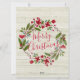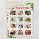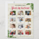 rústica alegre Navidad/feliz año nuevo/feliz vacaciones carta rústica con fondo de madera y hojas de pino y 12 fotos personalizadas con marcos, año en revisión, una foto por mes. en la parte trasera hay una corona floral con el texto Feliz Navidad. Comparte este increíble año con tus amigos y familias para la temporada de vacaciones como una gran tarjeta de recuerdo.