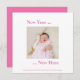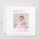 ¡Tu hija recién nacido ha llegado para el año nuevo! Estarás ansioso por anunciar las maravillosas noticias a tus seres queridos. Les puedes desear un feliz Año Nuevo al mismo tiempo con este diseño moderno de Año Nuevo, Nuevo aquí que es totalmente personalizable junto con tu foto favorita de tu chica recién nacido. Tu foto favorita está en formato cuadrado en el centro, con mucho espacio blanco alrededor para darle un toque contemporáneo. Personalice fácilmente el texto en la parte delantera y trasera con el suyo propio, incluyendo todos los detalles de su nueva llegada en la parte posterior, y simplemente reemplace la foto de ejemplo en el marcador de posición de la plantilla por la suya propia. También puede cambiar el fondo y los colores del texto en ambos lados si lo desea a través del personalizar.